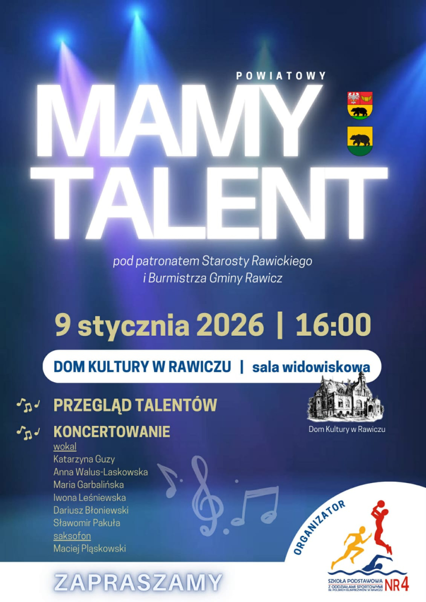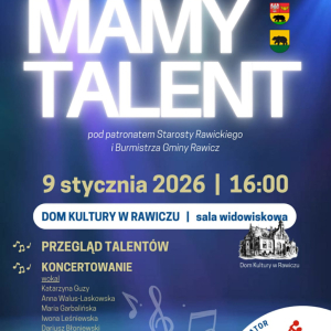 Serdecznie zapraszamy do udziału w kolejnej edycji konkursu "Mamy Talent 2025" skierowanym do uczniów szkół podstawowych i ponadpodstawowych z powiatu rawickiego. Przedmiotem konkursu jest promowanie uzdolnień dzieci i młodzieży.