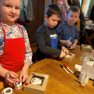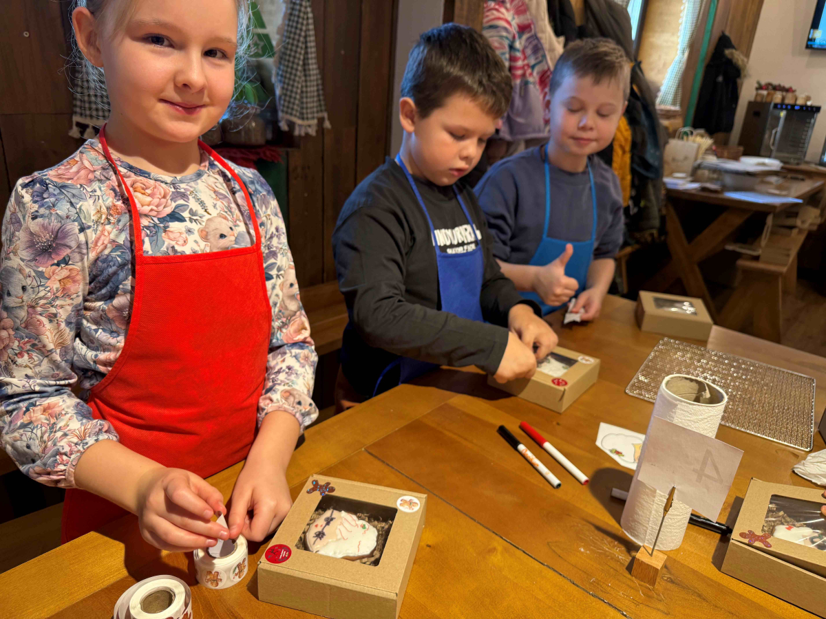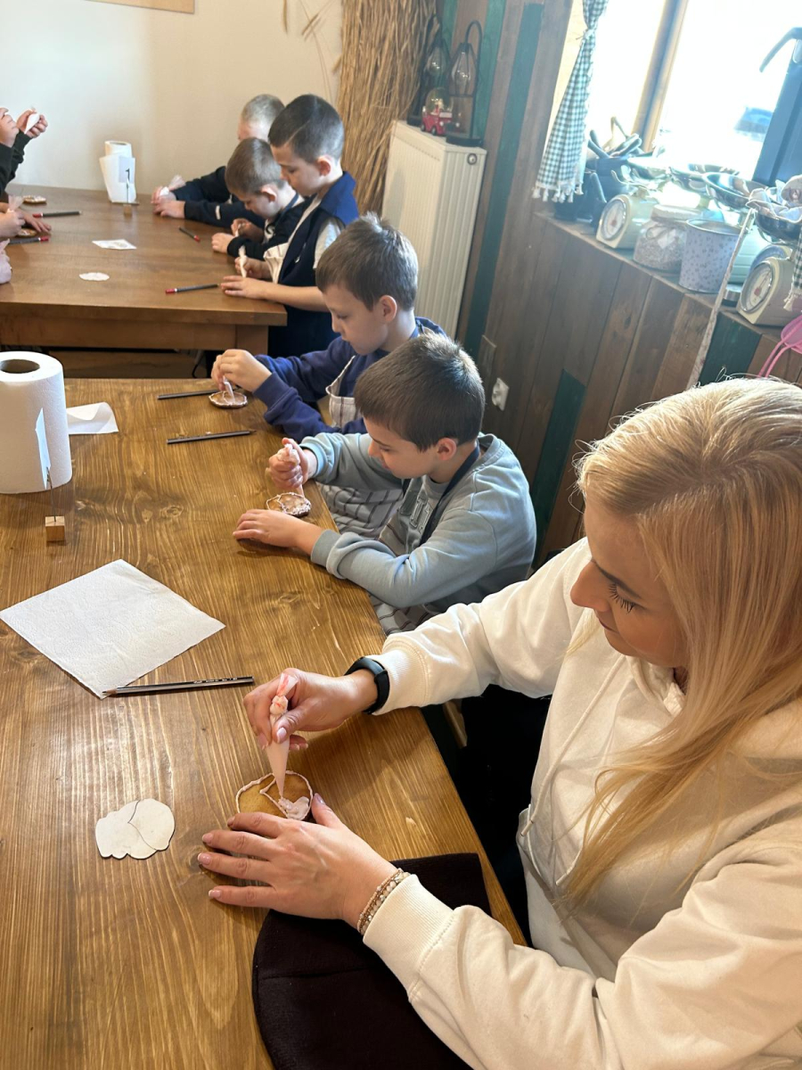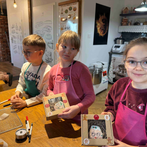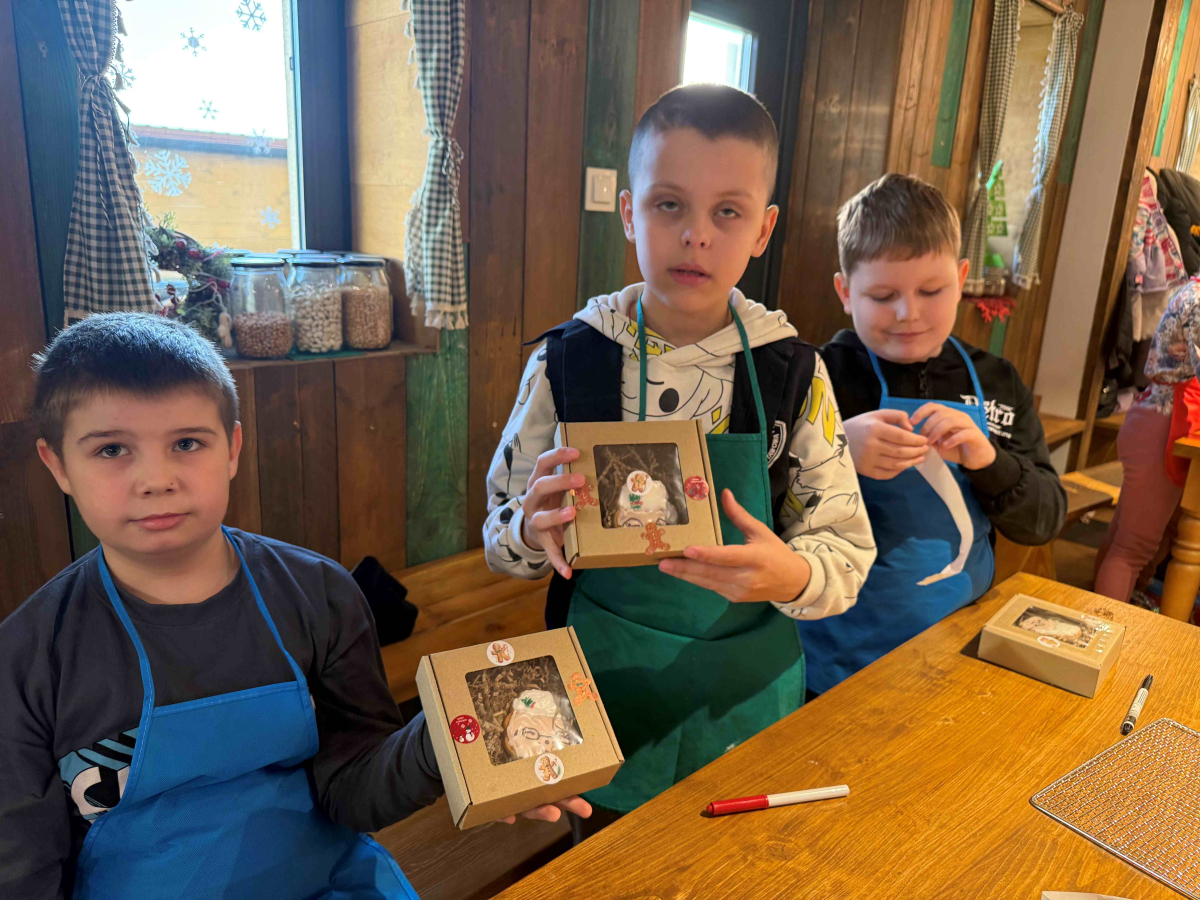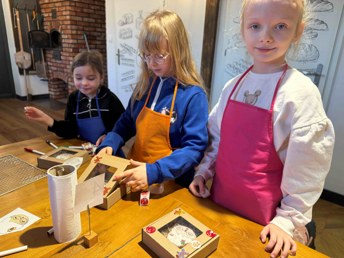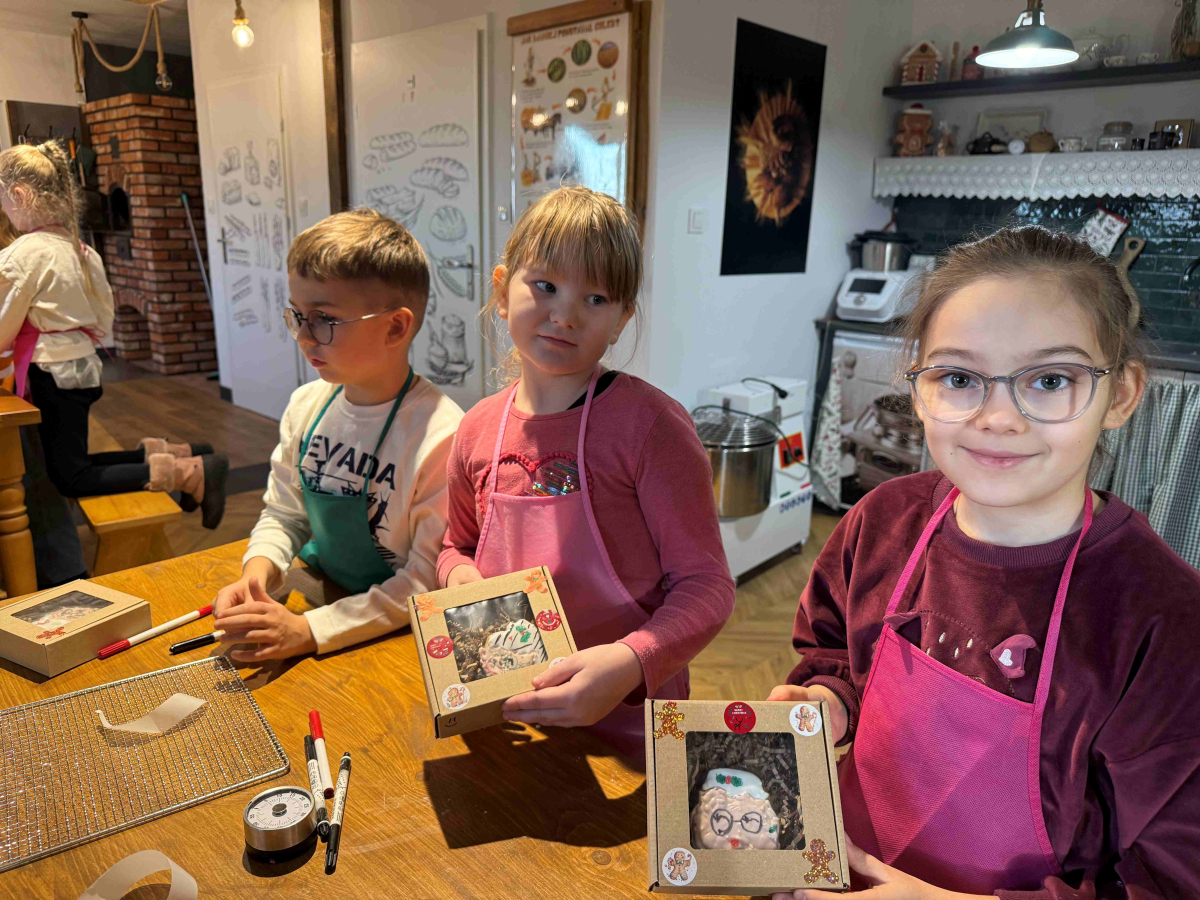 W dniu 15 grudnia br. uczniowie klasy Ie oraz II d udali się na wycieczkę do Pasieki Smakulskich w Pakosławiu, gdzie uczestniczyli w warsztatach pieczenia pierników. Wyjazd ten był nie tylko doskonałą okazją do wspólnej zabawy, ale także do poznania tradycji związanych z jednym z najbardziej lubianych świątecznych wypieków. Podczas warsztatów dzieci poznały historię piernika oraz dowiedziały się, jakie składniki są potrzebne do jego przygotowania. Następnie, pod czujnym okiem prowadzących, samodzielnie wyrabiały ciasto, wałkowały je i wykrawały pierniki w różnych kształtach. Każdy uczestnik mógł wykazać się kreatywnością, tworząc własne, niepowtarzalne wypieki. Warsztaty przebiegały w radosnej i świątecznej atmosferze, a zapach przypraw korzennych unosił się w całej pasiece. Gotowe pierniki sprawiły dzieciom wiele satysfakcji i stały się miłą pamiątką z wycieczki. Marita Cwojdzińska, Justyna Staniszewska