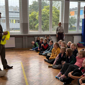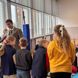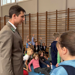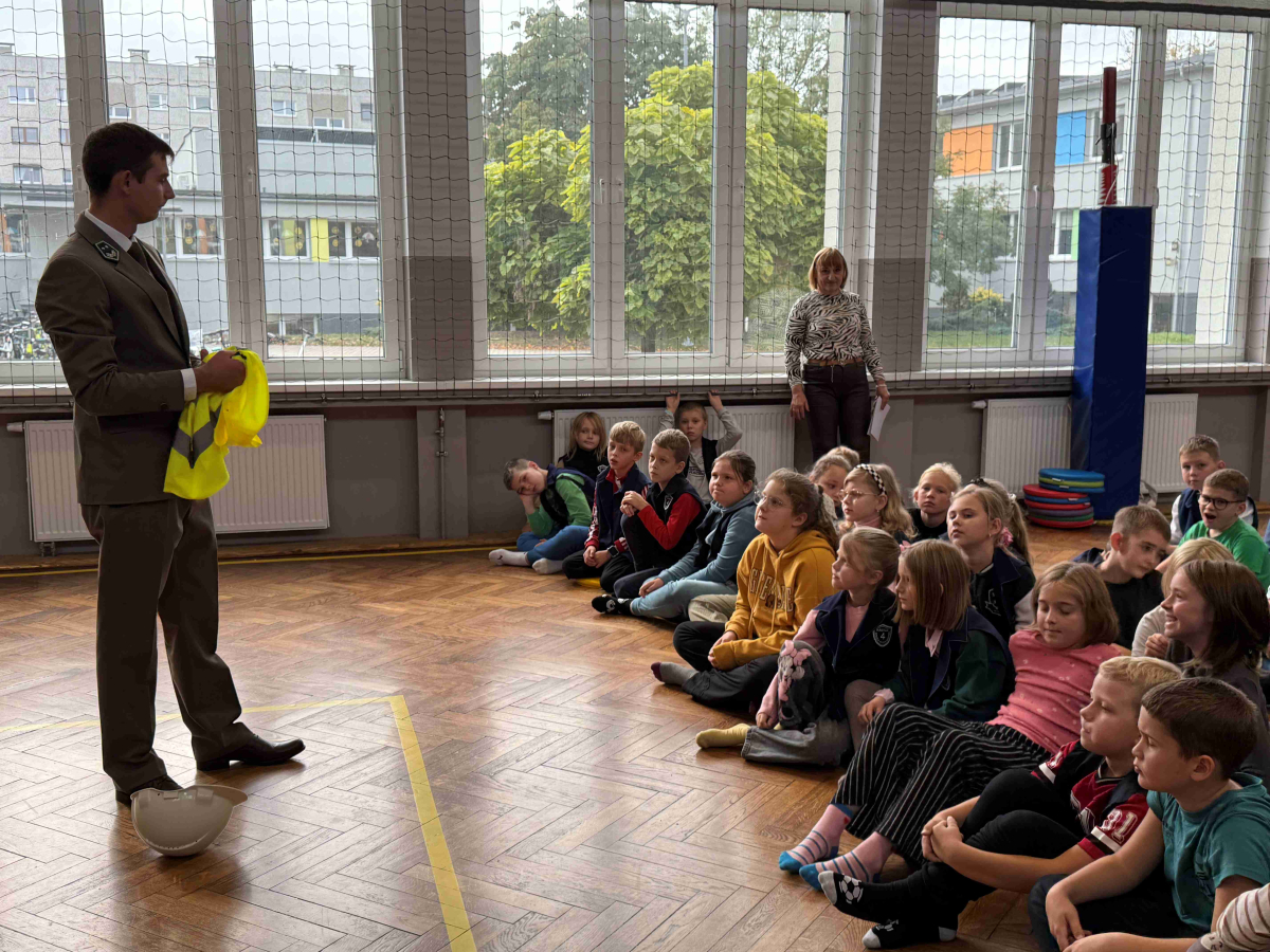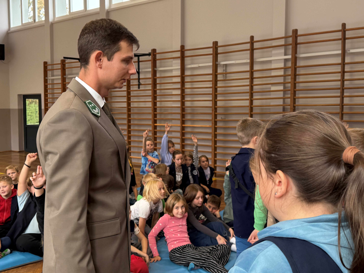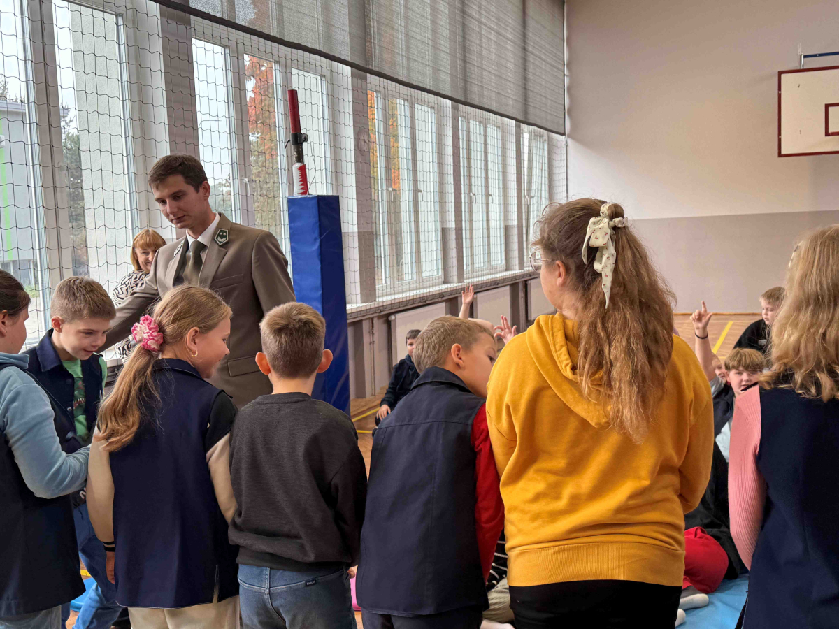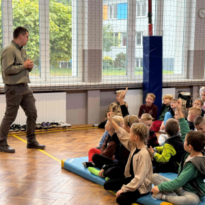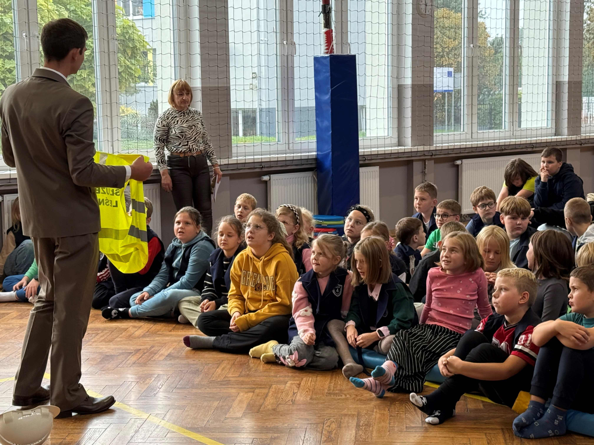 Dnia 15 października br. w naszej szkole odbyło się spotkanie z panami leśniczymi – panem Szymonem Kubasem oraz panem Hubertem Węcłasiem. Goście przybliżyli uczniom klas I–III fascynujący świat lasu, jego mieszkańców oraz znaczenie ochrony przyrody. Podczas zajęć uczniowie dowiedzieli się, jak wygląda praca leśnika na co dzień, jakie zwierzęta można spotkać w naszych lasach i jak rozpoznawać poszczególne gatunki drzew. Dzieci z wielkim zainteresowaniem słuchały opowieści o życiu lasu, a także zadawały mnóstwo pytań – od tych o dzikie zwierzęta, po ciekawostki o sadzeniu drzew. Nie zabrakło również praktycznych wskazówek, jak zachowywać się w lesie, by chronić jego mieszkańców i cieszyć się pięknem natury w sposób odpowiedzialny. Spotkanie z leśnikami było nie tylko źródłem wiedzy, ale także inspiracją do dalszego poznawania przyrody. Uczniowie opuścili salę gimnastyczną z uśmiechami na twarzach i nową dawką ekologicznej świadomości.Dziękujemy naszym gościom za poświęcony czas, pasję i zaangażowanie w edukację młodych miłośników przyrody!