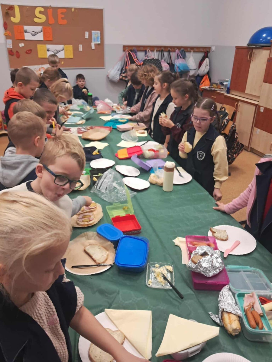 Dnia 3 listopada w naszej szkole obchodziliśmy Światowy Dzień Kanapki w ramach działań związanych z promocją zdrowia. Uczniowie klas I–III wzięli udział w zajęciach kulinarnych, podczas których samodzielnie przygotowywali pyszne i kolorowe kanapki.