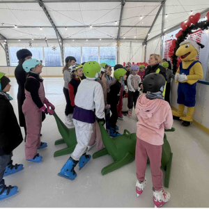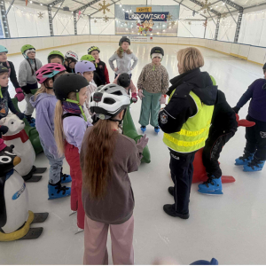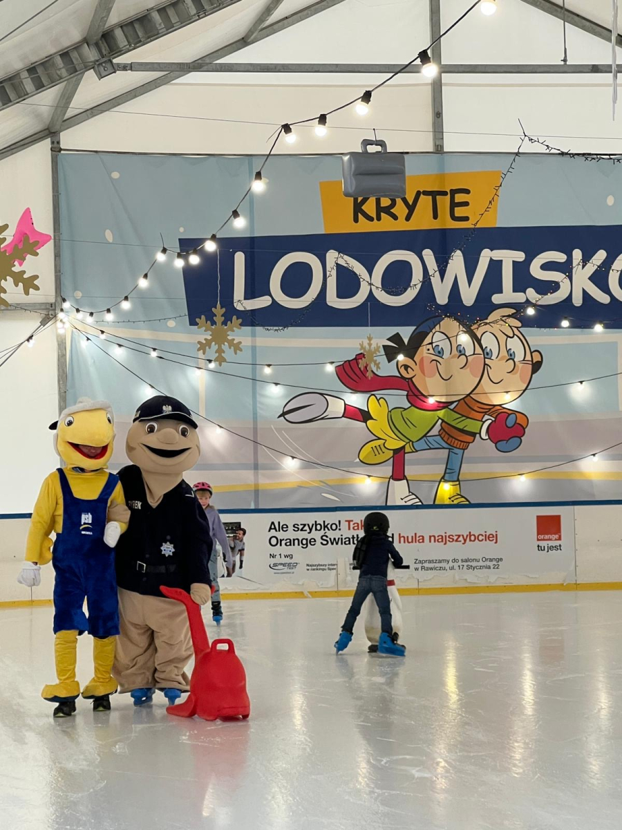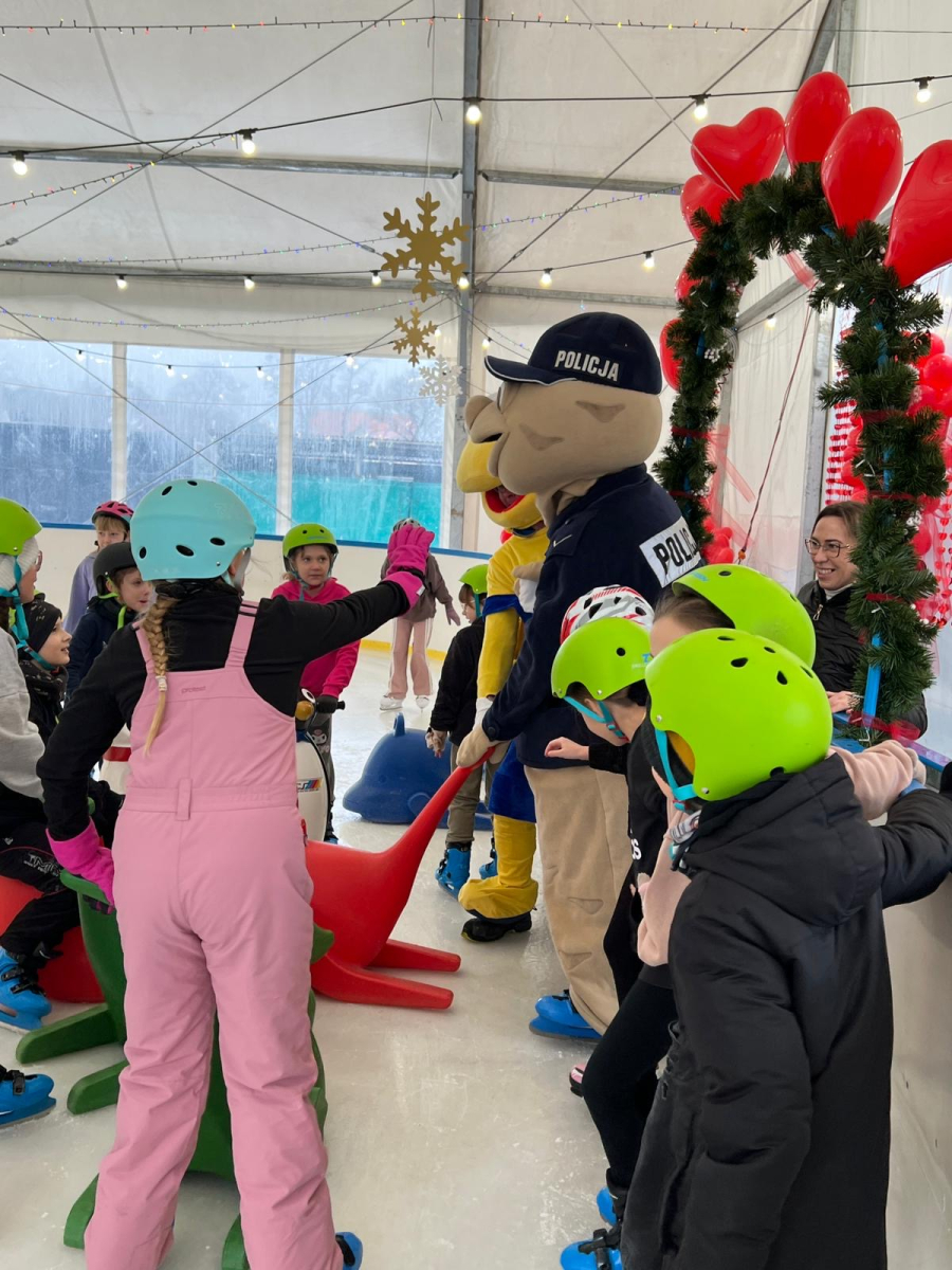 Uczniowie klasy 3b wzięli udział w wyjątkowym wydarzeniu profilaktycznym zorganizowanym przez funkcjonariuszy Komendy Powiatowej Policji w Rawiczu. Główną bohaterką spotkania była maskotka wielkopolskiej policji – Sierżant Pyrek, która tym razem zaprezentowała się w niecodziennej odsłonie, jeżdżąc na lodzie.Podczas wydarzenia dzieci w przystępny i atrakcyjny sposób poznawały zasady bezpiecznego poruszania się po śliskiej nawierzchni, odpowiedzialnego korzystania z zimowych atrakcji oraz dowiedziały się, jakich zachowań należy unikać podczas zimowego wypoczynku. Uczniowie mieli możliwość zadawania pytań oraz uczestniczenia w krótkich ćwiczeniach edukacyjnych.W działania promujące bezpieczeństwo włączyła się także firma PSB Mrówka Rawicz, której maskotka aktywnie wspierała akcję. Wspólnie z Sierżantem Pyrkiem rozdawała dzieciom odblaski, podkreślając ich ogromne znaczenie dla widoczności i bezpieczeństwa na drodze, szczególnie w okresie zimowym.