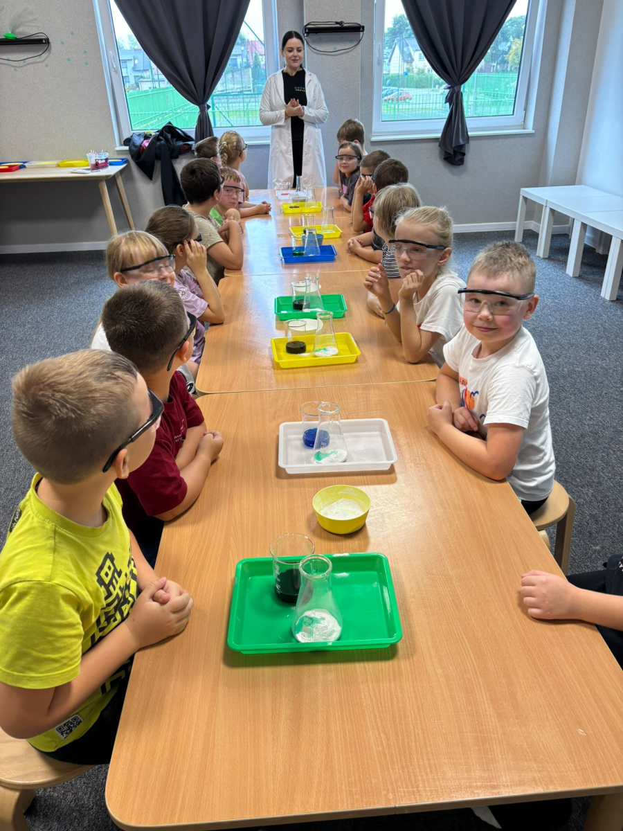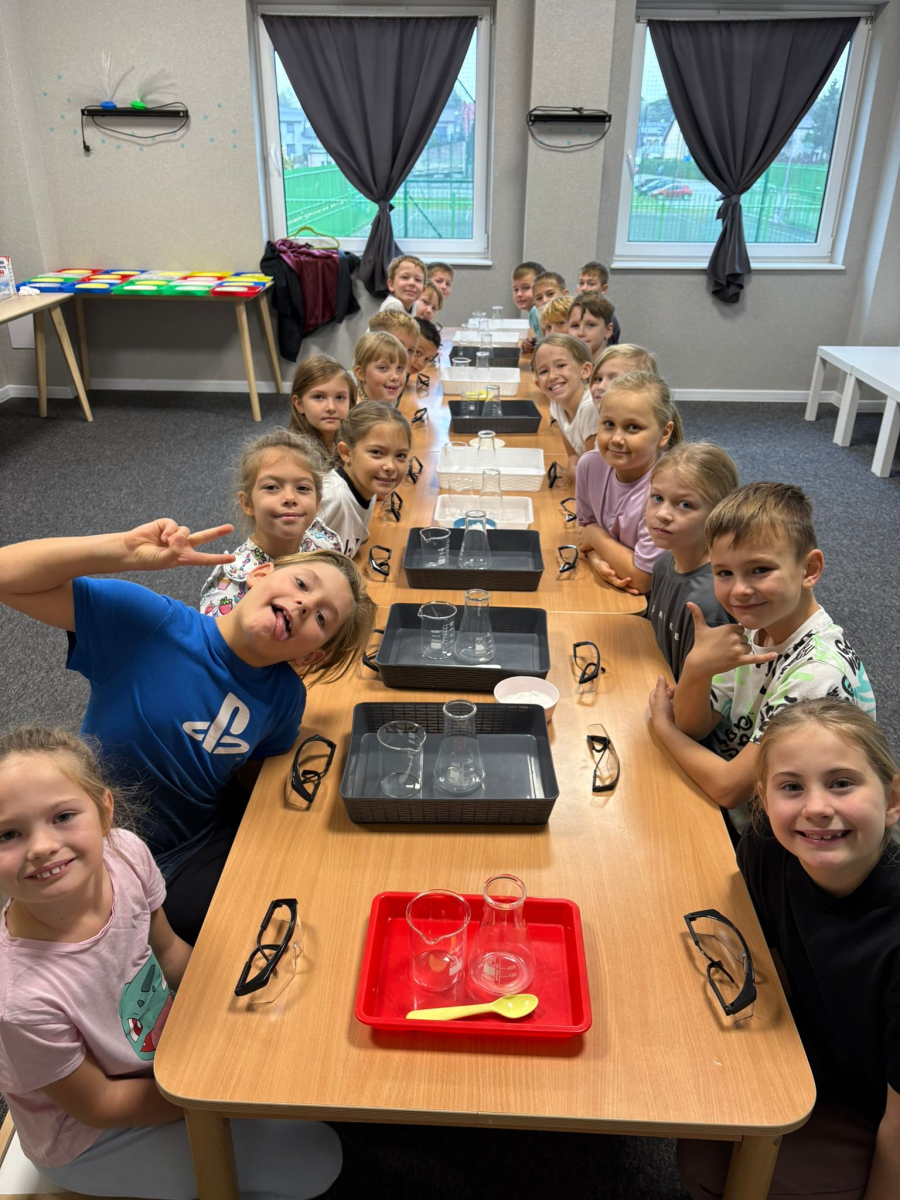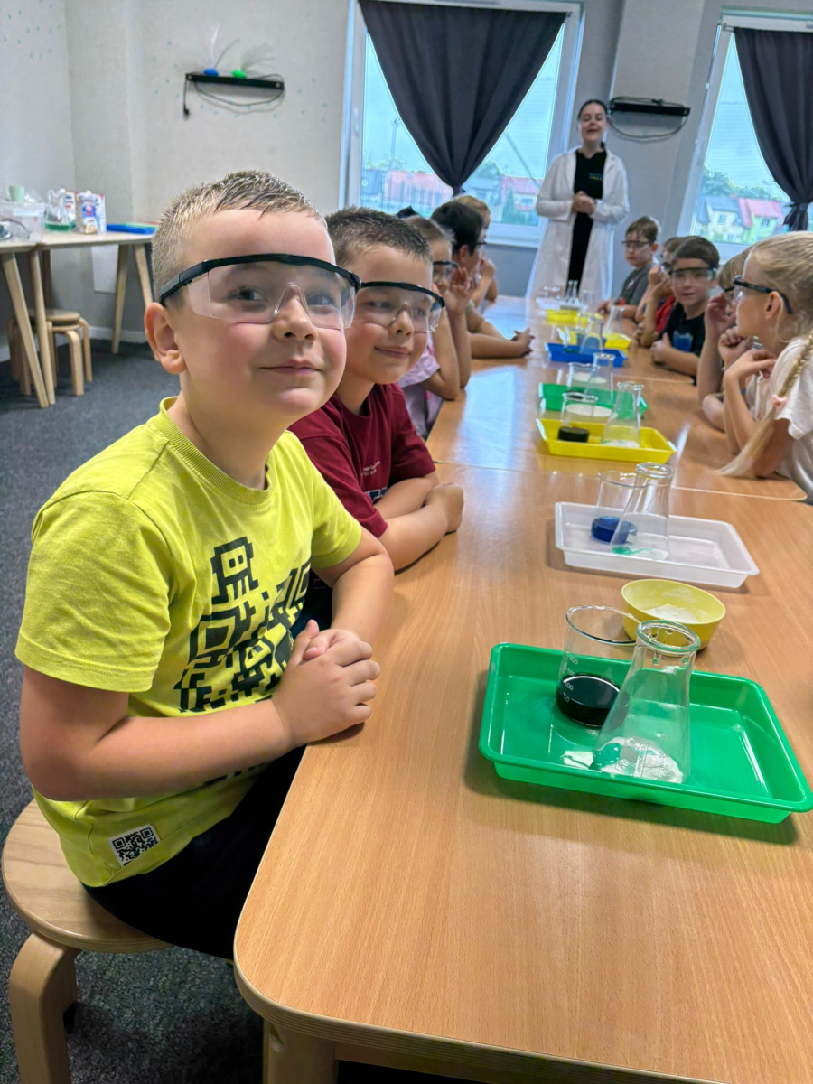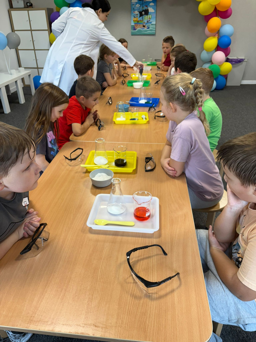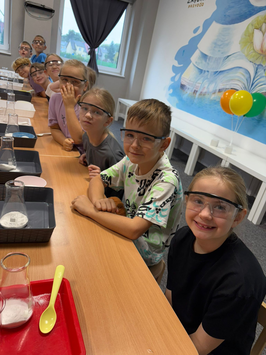 Najpierw mali odkrywcy dali upust swojej energii na sali zabaw, korzystając z licznych atrakcji, które zapewniły im mnóstwo ruchu i radości. Następnie uczestniczyli w warsztatach magiczno-chemicznych, podczas których mogli samodzielnie eksperymentować i przekonać się, że nauka może być prawdziwie magiczna!