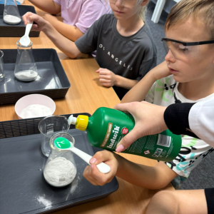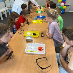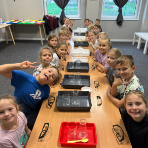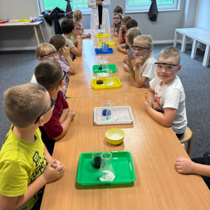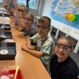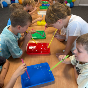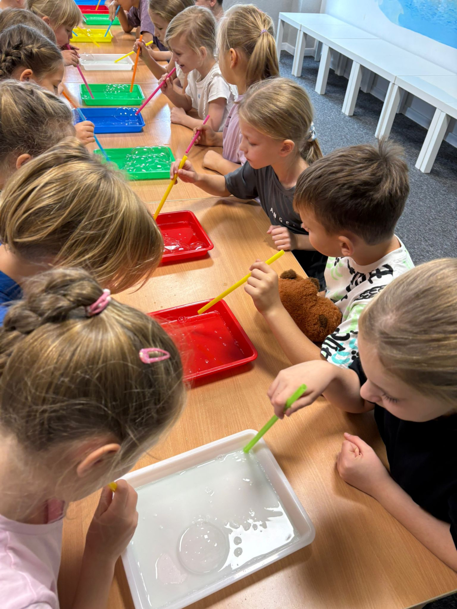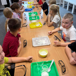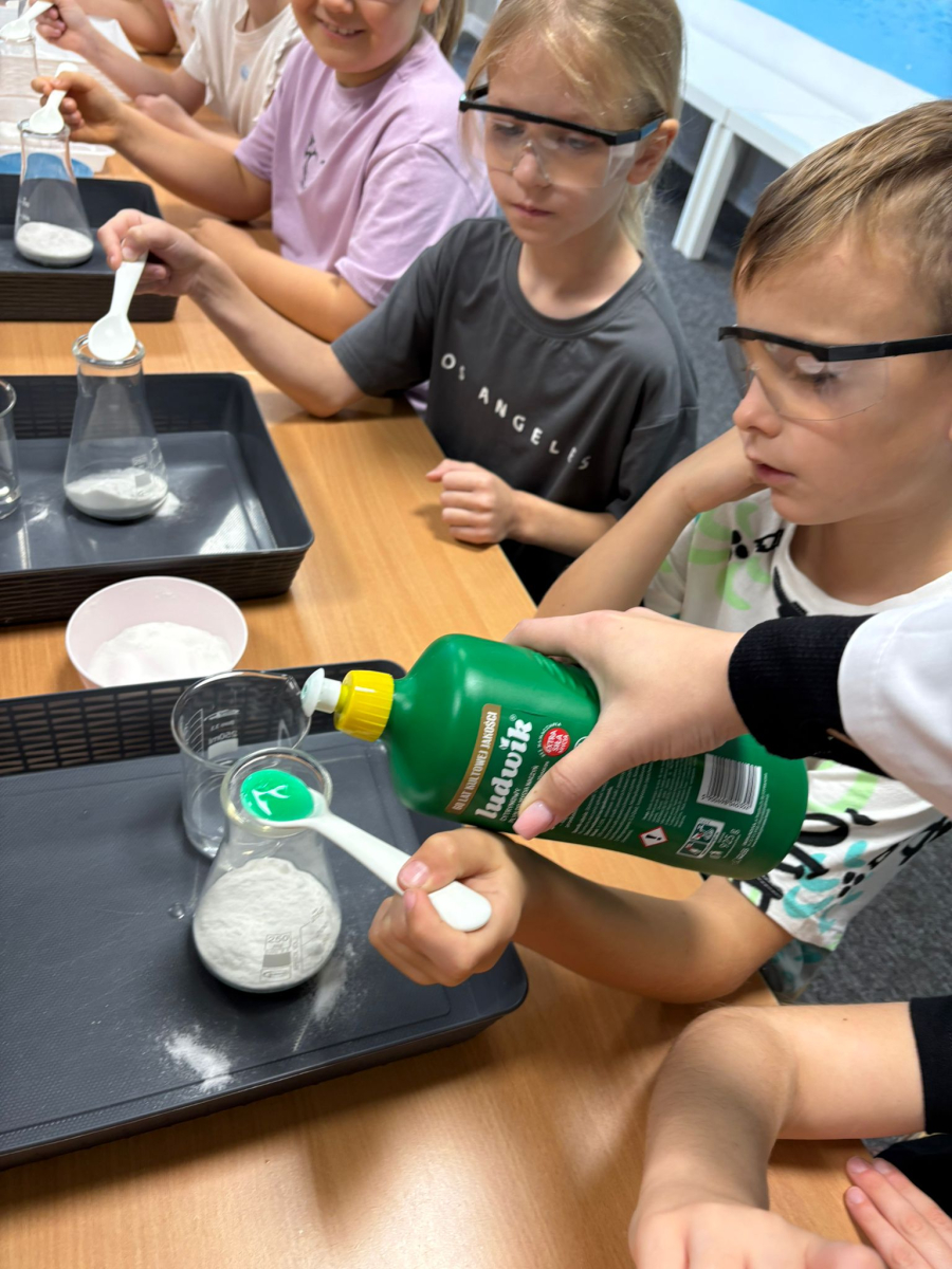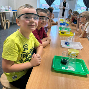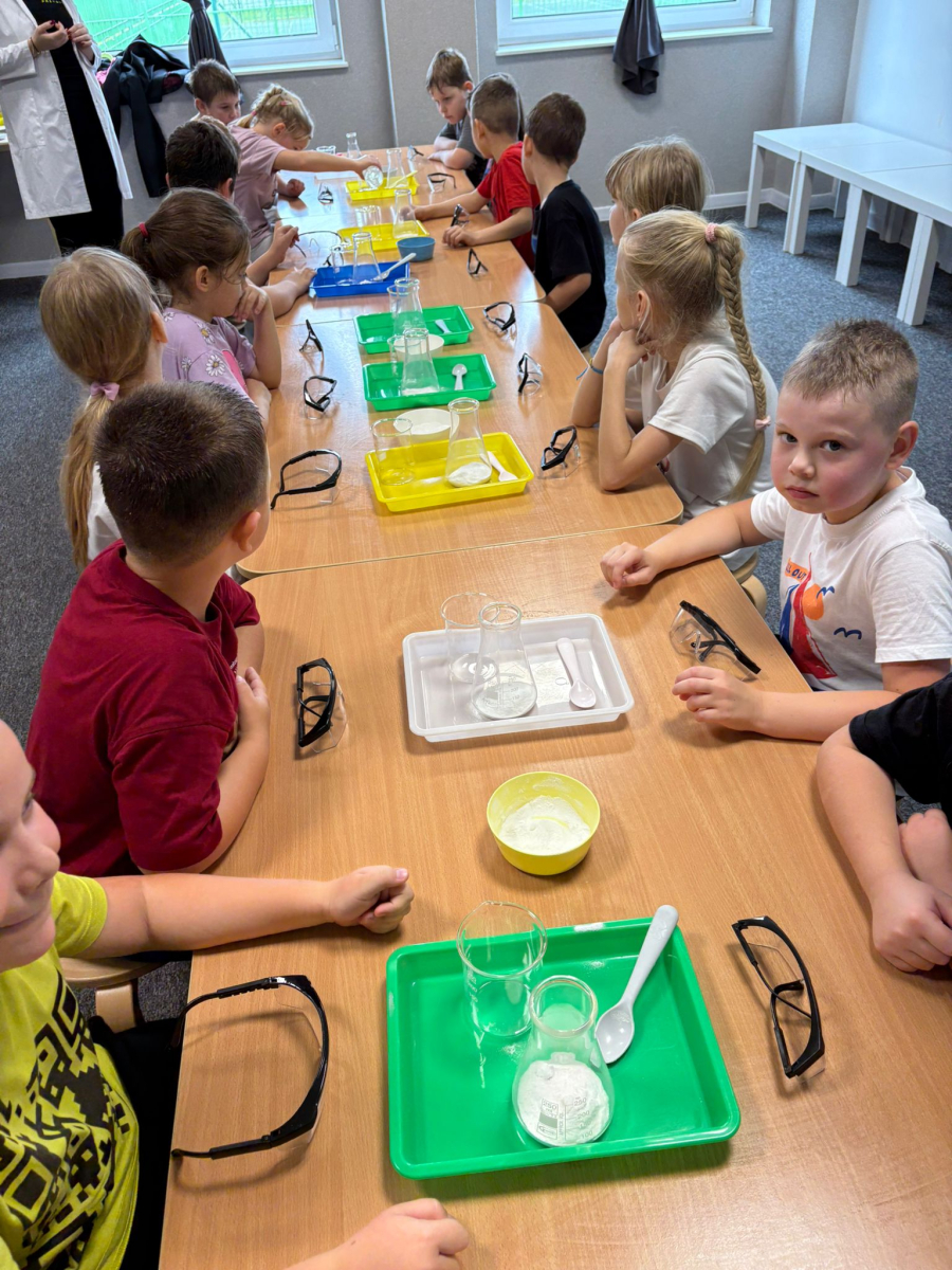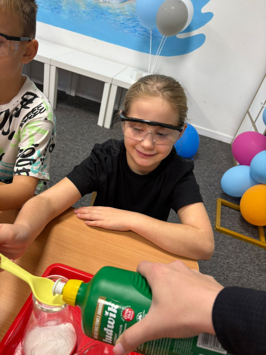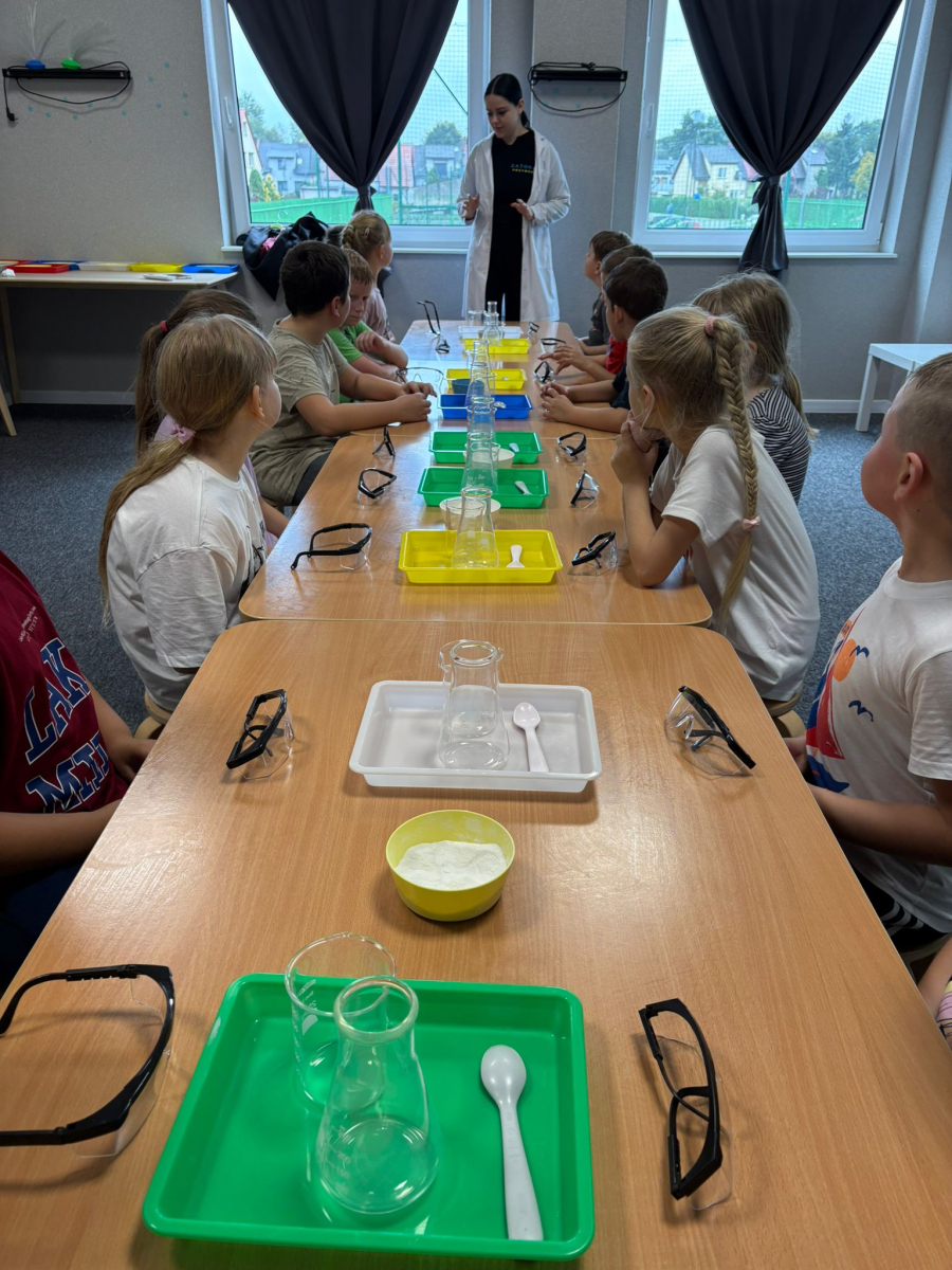 Najpierw mali odkrywcy dali upust swojej energii na sali zabaw, korzystając z licznych atrakcji, które zapewniły im mnóstwo ruchu i radości. Następnie uczestniczyli w warsztatach magiczno-chemicznych, podczas których mogli samodzielnie eksperymentować i przekonać się, że nauka może być prawdziwie magiczna!